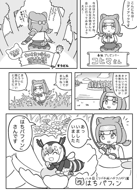 #パフィンちゃん合同2 で4ページ漫画で参加させていただきました! おっきなクマのフレンズさんがパフィンちゃんのおうちにやってくるお話です!(画像は実際の内容と大きく異なる場合があります) twitter.com/hisser/status/…