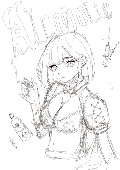 厨二病 #絵 #イラスト #落書き #らくがき #wip #ラフ #下書き #線画 #アキバ #秋葉原 #コンカフェ #雰囲気嫌いじゃないよって人いいね #私の性癖はきっと誰かにささる