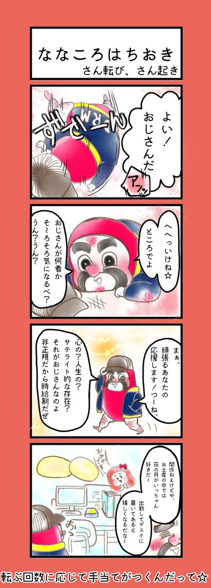 「ななころはちおき」 あげなおしです! #四コマ漫画 #漫画が読めるハッシュタグ #創作漫画 #絵描きさんと繋がりたい
