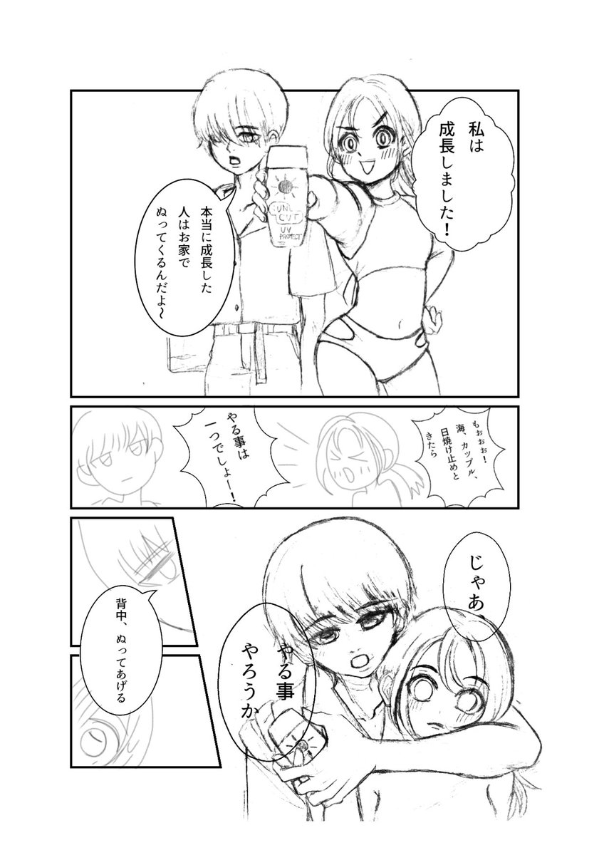 「海辺!カップル!日焼け止め?」 完成させるぞ! #漫画が読めるハッシュタグ #絵描きさんと繋がりたい #創作漫画