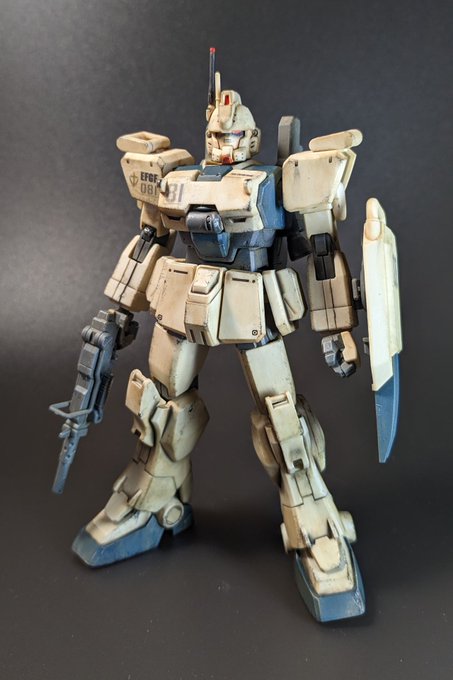 HG #ジェガン(ユウ・カジマ専用機)完成 スミ入れシャーペンだけじゃ味気ないので、リアルタッチマーカー(グレー1)とウエザリングマスターで化粧。クリアパーツをはめて出来上がり。 ジェガン、そこはかとなくイイよね。いつかMGにもチャレンジしたいなぁ。 #ガンプラの画像貼るとRTされると聞いて