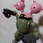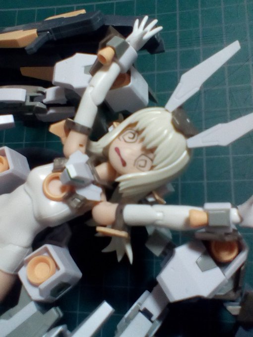ばーぜに表情パーツを作ってみたくなったのでまずはグルグル目パーツを用意してみました。ギャグ顔なのでフレズヴェルクの肌色ランナーに付いているのっぺらフェイスのアゴと鼻を削って、手持ちのデカールを貼りました。 #バーゼラルド #フレームアームズ・ガール #メガミデバイス