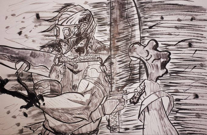 3 9 #kmt遊闇音郭祭 タグお借りします 筆ペン画で描きました 最終決戦すごかった✨ 22/02/11 23:58