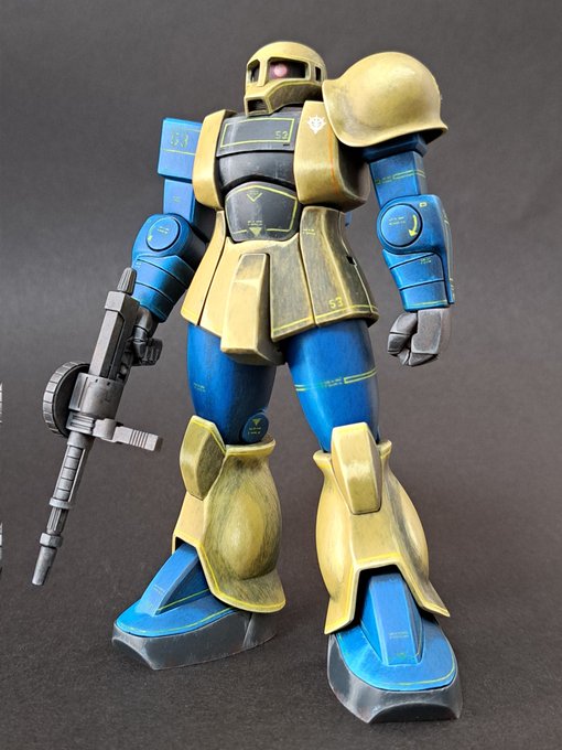 22 248 今日の旧ザクっち最終回。完成です。初めてガワラ立ちや設定画イラスト風に塗装してみたり。明暗法をもっと勉強しないと背面とか全然わかんなくて四苦八苦😵間違えた所いっぱいあるんじゃないかな(汗) #ガンプラ #旧ザク #筆塗り #手描きマーキング 22/12/26 18:01