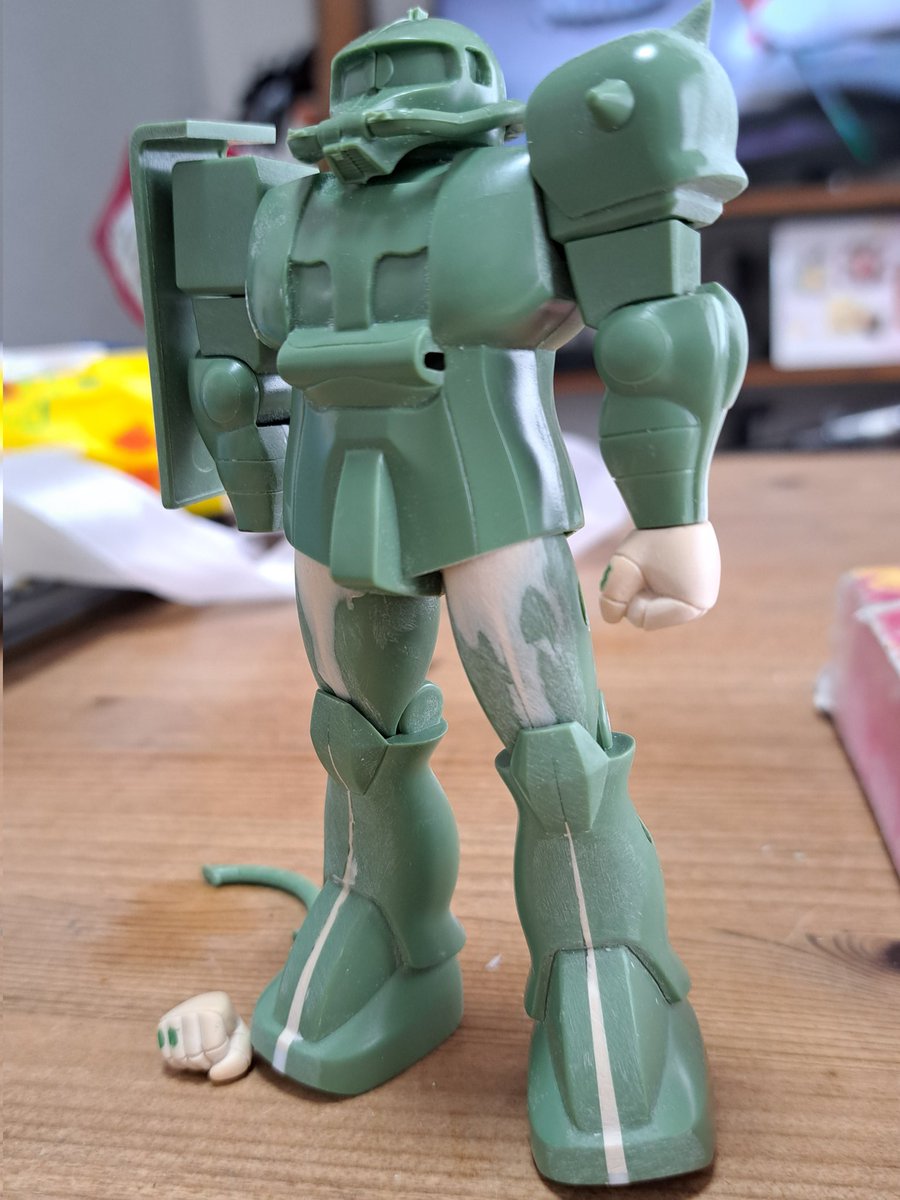 4 10 今日の300円ザク様。初めての手首スクラッチその2。まあまあ良いんじゃね😳⁉️自分が1番ビックリしている(笑)やれば出来るじゃーん😊この作業は超楽しい。 #ガンプラ #旧キット #ザク 23/02/04 12:59