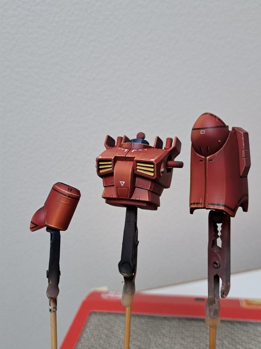 1 3 今日のガンキャノン氏。ゴーグルって、どう塗ったらいいの?何度も直してたらわかんなくなっちゃった😥クリアーブルー上塗りして終わりでいいかしら? #ガンプラ #ガンキャノン 23/02/17 18:11