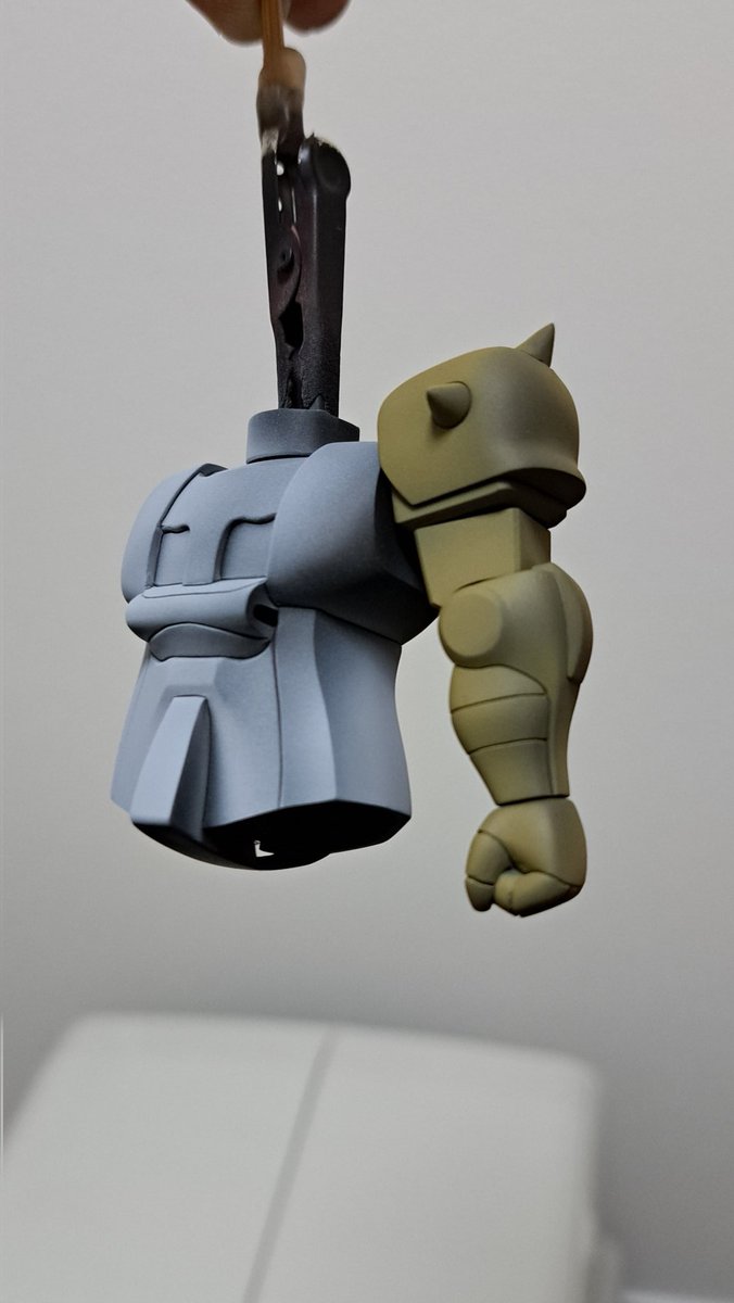 1 12 今日の300円ザク様part2。本体カラーと影色。個人的に暗い色の上に明るい色をエアブラシする方が得意かもしれない。色々試しながらやってみよう。 #ガンプラ #ザク #旧キット 23/03/15 17:17