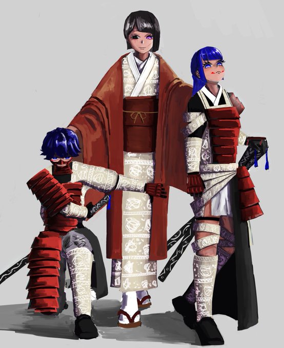 まぁまぁ落ち着いて2人とも #イラスト #イラスト好きな人とつながりたい #絵描きさんと繋がりたい #創作 #武士 #姉弟 #刀