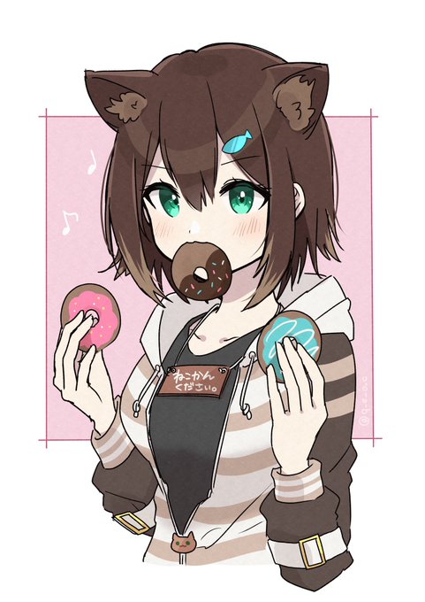 🍩 🐈 🐟 楽屋のドーナツを独り占めしてご機嫌な野良猫 #のらねっこあら
