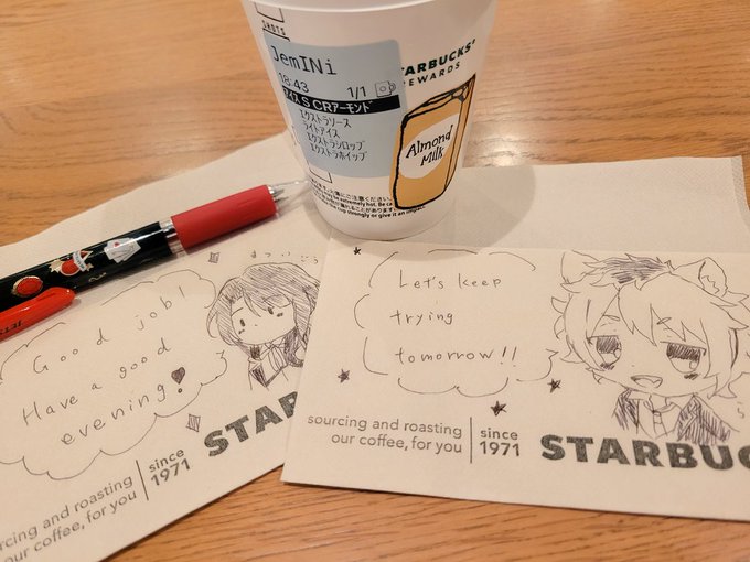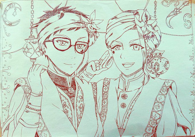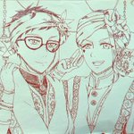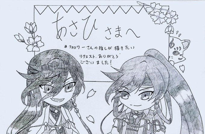 ①仁様とCONAN様のチャイナ師弟 ②弊社の創作夫婦撫子と龍彦 ③FGOのコンスタンティノスとコンちゃん ④真剣乱舞祭現地参加2日前に何故か作り出したGOのものうちわ 今年もたくさん描いたなぁ #今年も残りわずかなのでお気に入りの4枚を貼る