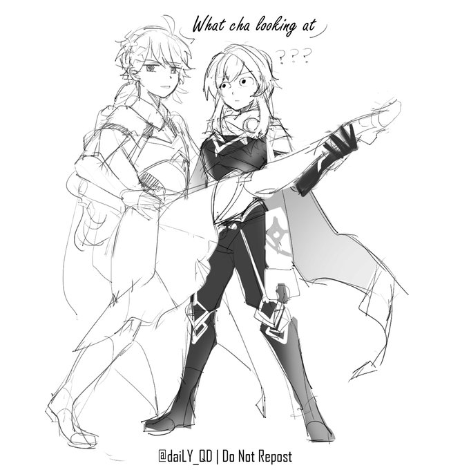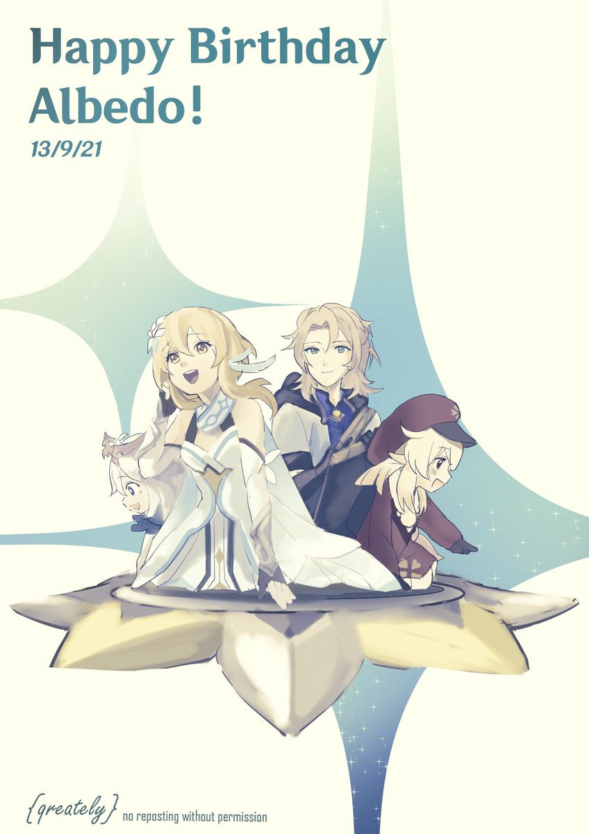 Happy Birthday Albedo!✨A great day to sketch outdoors on your magical solar isotoma (with some of your favorite people) don't you think?😉 #アルベド生誕祭2021 #Albedo #klee #Albelumi #genshinimpact #原神
