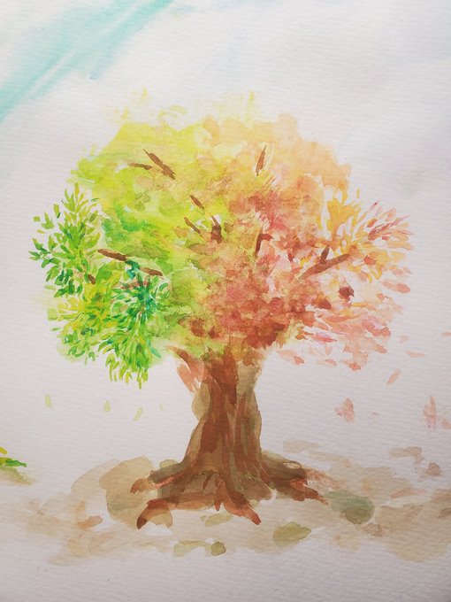 0 2 高校の時の描き途中だった木を仕上げた #絵 #水彩 #木 #スケッチブック 22/01/28 18:31