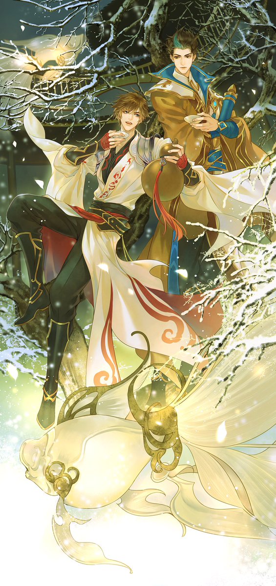 画了下王者荣耀的李白和狄仁杰。四季回廊冬日豪饮。