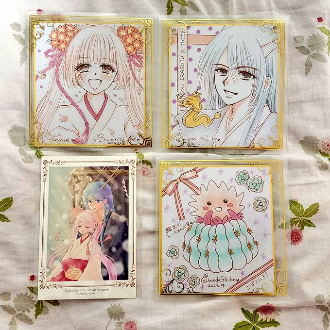 #さぼてん村イラスト展 @YuunyaHime さんのミニ色紙 本当はちーちゃんをお迎えに行ったはずでしたが、なんと七宗イラストアート展のミニ色紙もある!しかも、ポストカード見たら、これは対でお迎えしたい!!いや、これはお迎えしなければ💓 ということで、 3枚お迎えさせていただきました💞 twitter.com/YuunyaHime/sta…