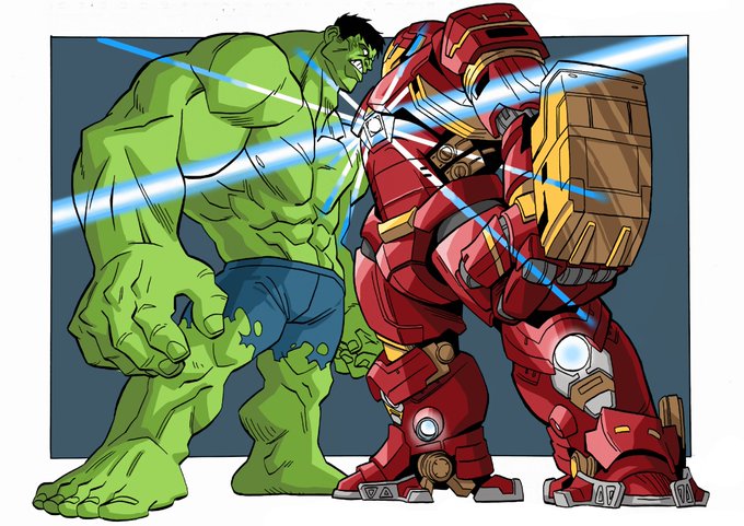そういえば描いてなかったハルクバスター。寂しいのでハルクも描いた。 #イラスト #マーベル
