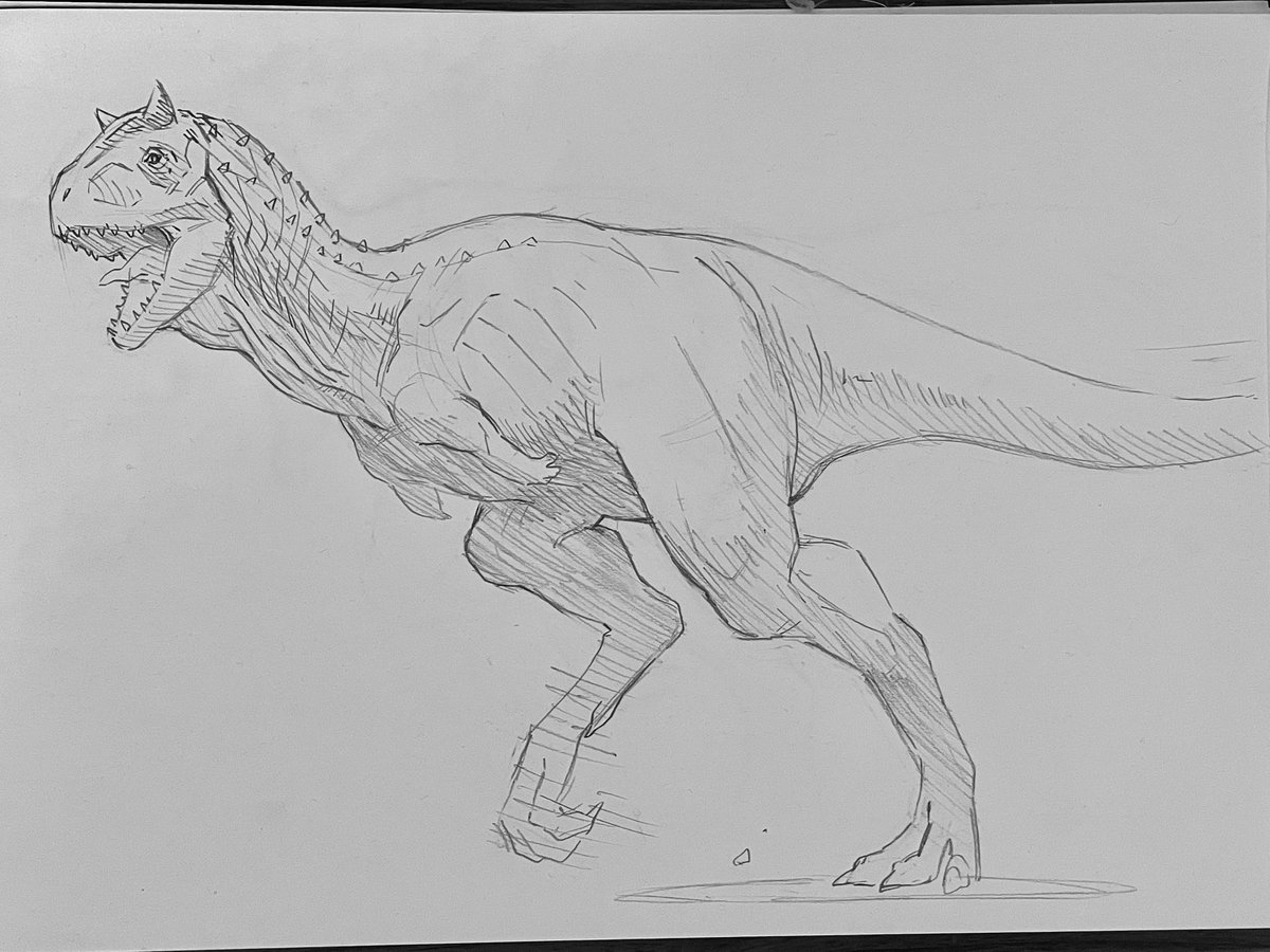 1 2 カルノタウルス描き直した。炎の王国で一目惚れしてからずっと作りたい恐竜。 #イラスト #恐竜 23/02/20 20:01