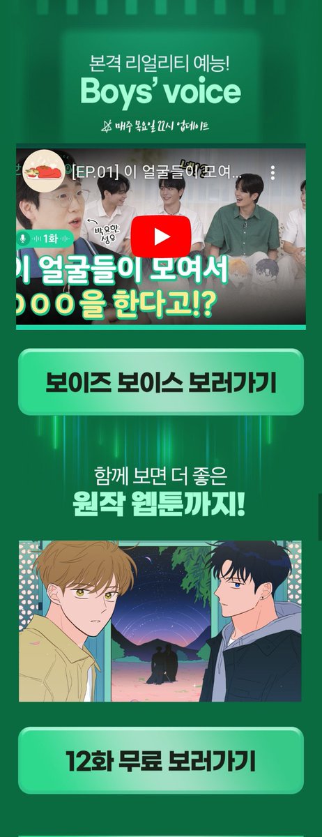 웹 예능 "보이즈 보이스" 런칭 기념 <범을 길들이는 요령> 12화 무료 이벤트 진행 중!(~8/31까지) 👻범요령 보러가기-> bomtoon.com/comic/ep_list/… 🎧보이즈 보이스 보러가기-> youtu.be/UdId3KkFhBc