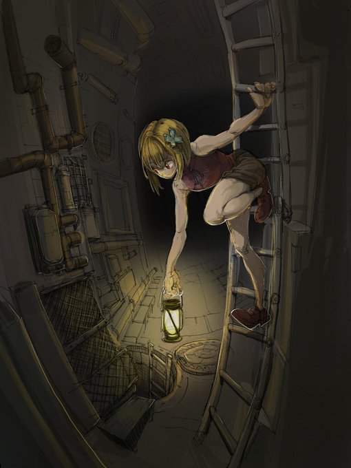 9 39 #イラスト #少女 #地下通路 #はしご 23/01/06 19:13