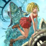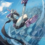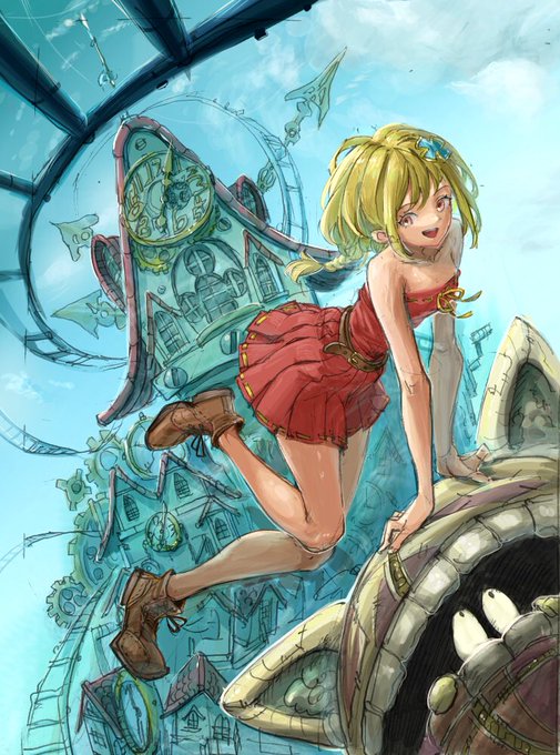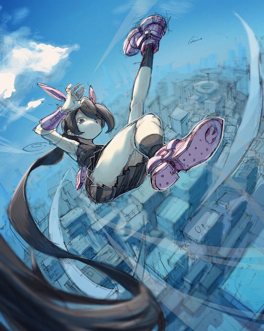 #イラスト #少女 #空中 #うさぎ #青空 #街