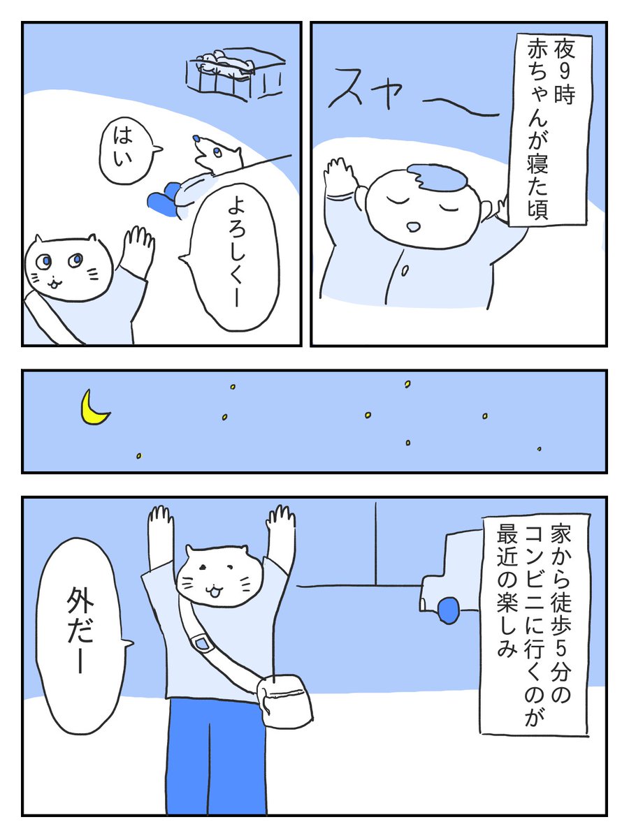 4 30 「ただコンビニに行くだけの話」 新生児のころはなかなか外にも出れず、家にこ もりきり… 夜にコンビニに出かけるのが息抜きになっていました。 #育児絵日記 #育児漫画 23/06/18 21:00