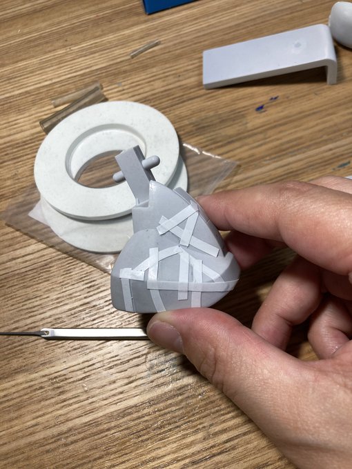 #マシーネン #nitto エポパテでシーリングを作った。初めてやったんだけど、なんか簡単にそれつっぽい感じになると思ってた…難しい。肩にメロンパン乗せてるやんけ…