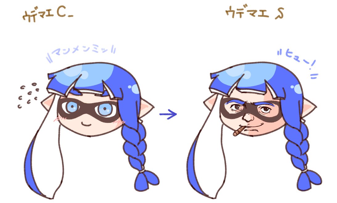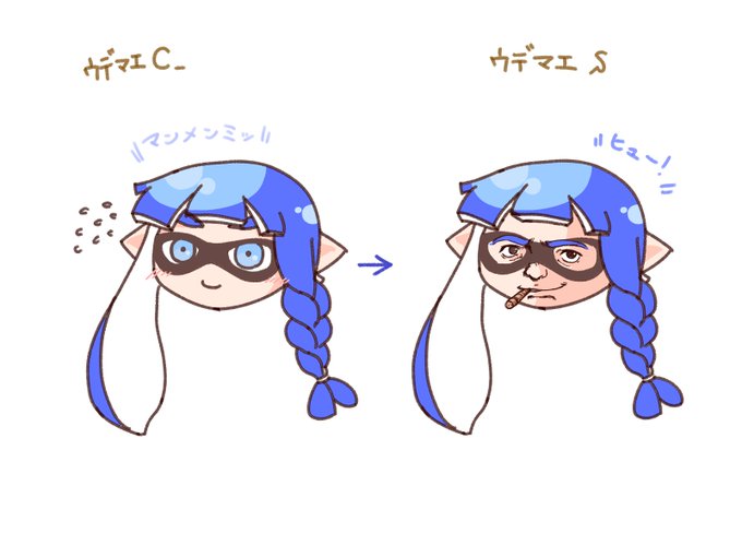 スプラでランク上がったりすると店の店員とかが「すっげーイカしてきたな!!」って褒めてくれるけど服は変わってないし何で見分けてんだろうやっぱ顔つきとか変わるんだろうかって夜勤中に思って生まれたクソ落書き。