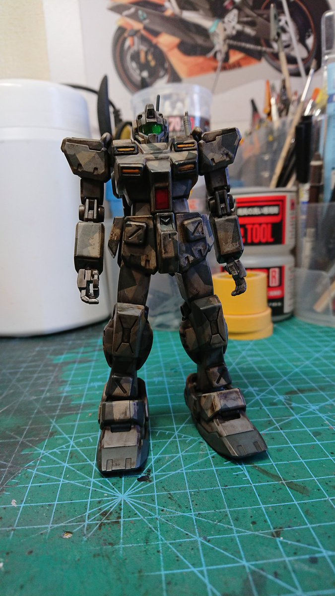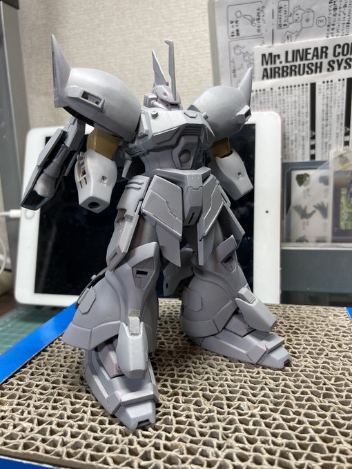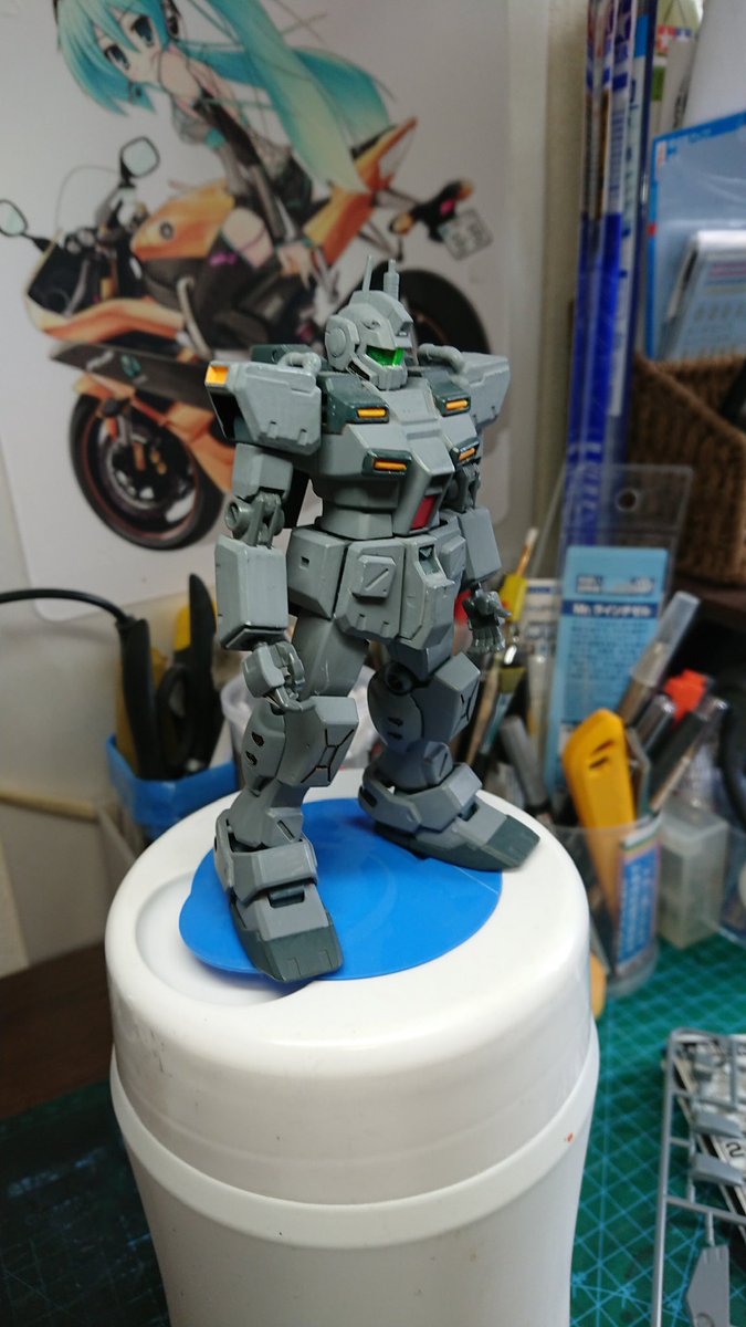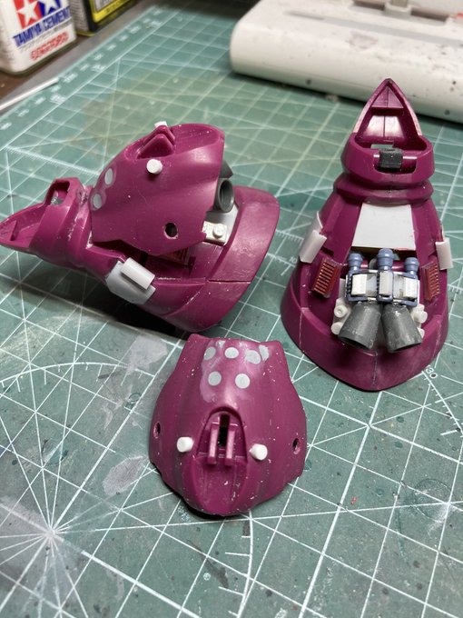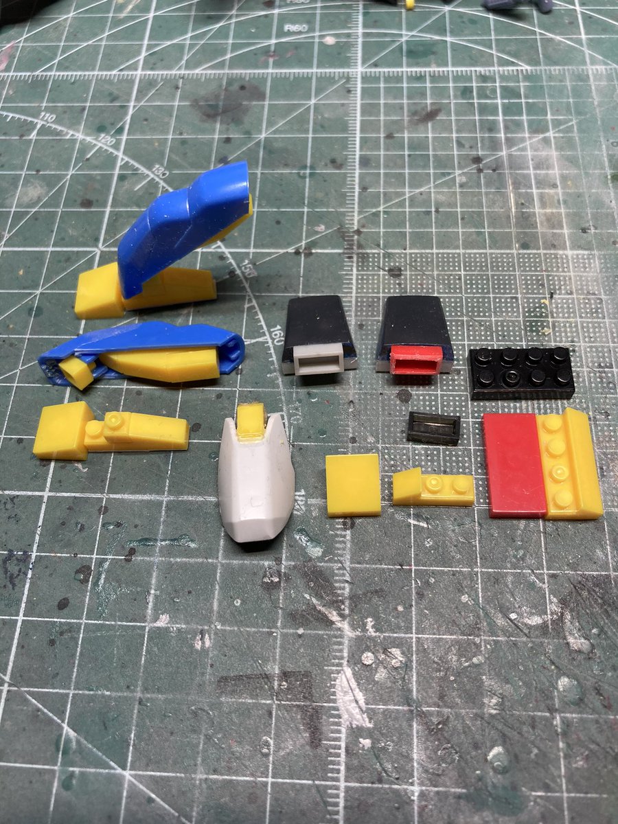 #ガンプラ #ゲルググ 肩パーツを5ミリ延長して、若干いかり肩に。 最近100均のミニブロック多用してます🤗
