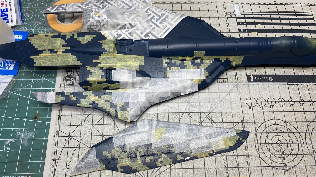 26 84 #二度とやりたくない工作 紗綾形と花吹雪のマスキングw おかげでデジタル迷彩のマスキングは かなり楽と思える様になりました😆 22/10/15 12:14