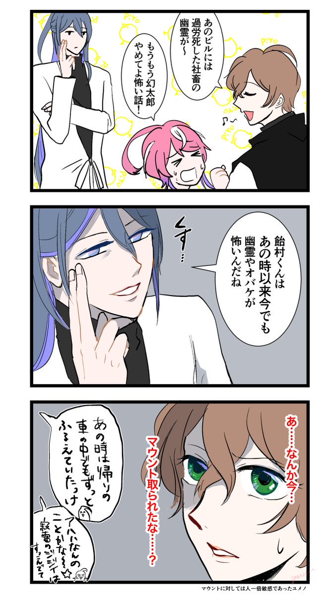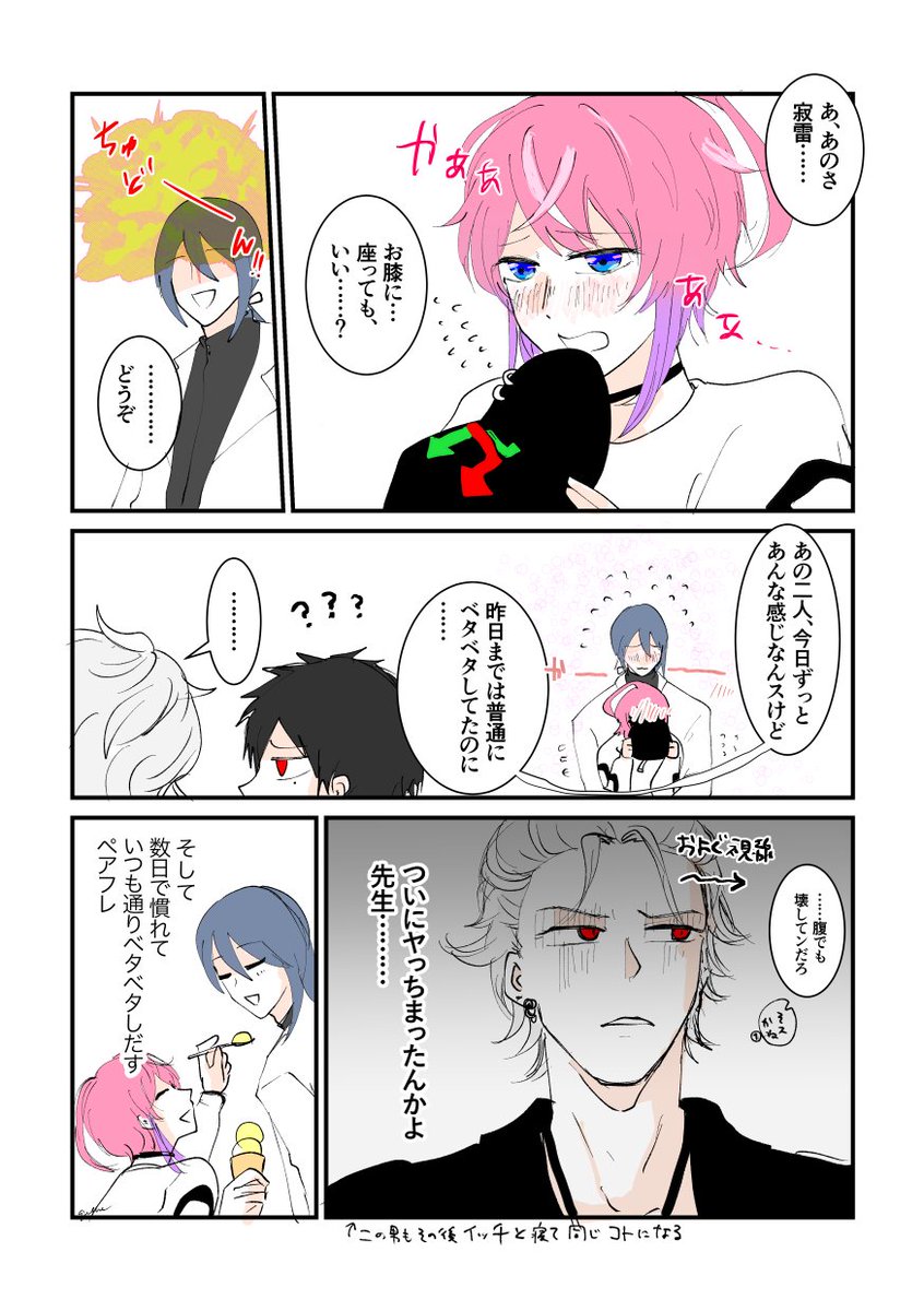 ⚠️エッヂ微ネタバレ有 📚にマウント取る💉を描きました(💉🍭+📚) 💉「🍭くんをホラー苦手にしたのは私という事実」 twitter.com/qqquchiha/stat…