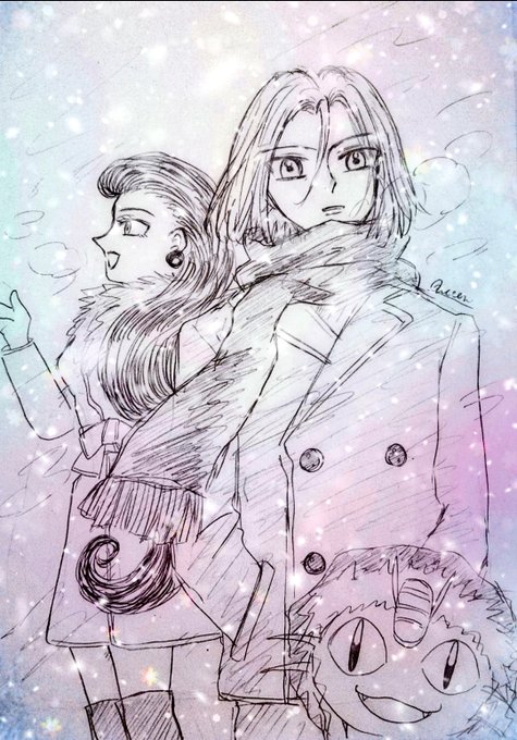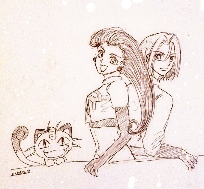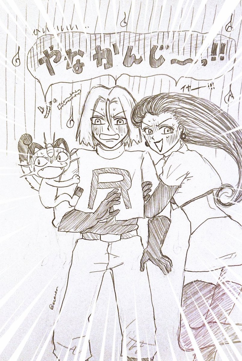 #アニポケR団ワンドロライ お題「好きなロケット団のシーン🚀」 遅刻です~🙏 「おニャースさまのしま!?」より。クライマックスのこのシーンは、二人の絶妙な表情とニャースのくしゃくしゃな泣き顔につられて私も見る度に泣きそうになります。