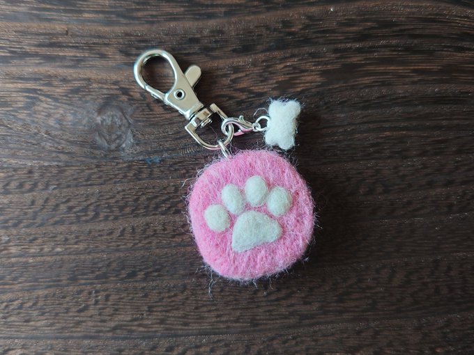 🐾新作です🐾 【うちの子 肉球キーホルダー】 ☆うちの豆柴sistersがモデル ☆肉球がぷっくり浮き出ています ☆女の子らしいピンク色 minne.com/items/30935492 骨の形のチャームはマスクチャームにも出来ます✨ #minne #minne_new #羊毛フェルト #新作 #キーホルダー