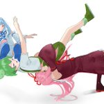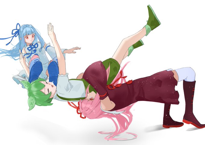 27 70 お題箱より「ずんだもんをシャーマンスープレックスする琴葉茜と、そのずんだもんの顔を低空ドロップキックしている琴葉葵」 #イラスト 23/01/09 18:51