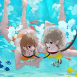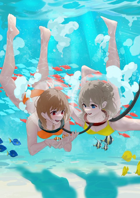 5 30 お題箱より「海中散歩をする2人の女子高生」 #イラスト 23/01/29 21:02