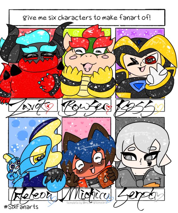 finished my piece for the #sixfanarts challenge~ thank you to those who suggested the characters, i had fun drawing them~💕 💫💕🌸💕💫 #sonic #supermario #megaman #pokemonswordshield #bna #digitaldevilsaga