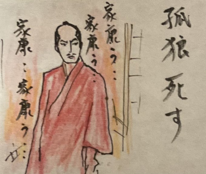 信長公は夢をみる。 夜毎、襲い来る敵の夢。 今宵、ようやく夢で敵の顔を確認する。 果たしてそれは家康の白い顔だった。 けれど夢は覚め家康は居ない。 傷と襲撃だけが現実である。 燃え盛る本能寺に、夜着の白を朱に染め、信長公が呼ぶのはただ、家康の名でございました。 #どうする家康 #どうする絵