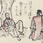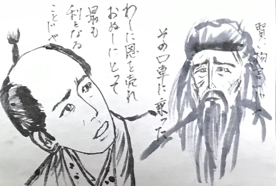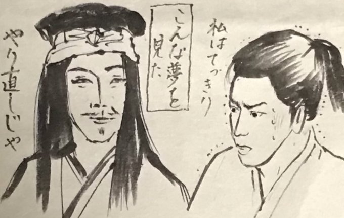 本能寺の変の直後。 信長公の死による混乱の中、命からがら国へと戻る家康公の伊賀越え道中双六。 どの目が出れば生き延びられるか。 捕らわれて首を獲られる直前に。 事の是非ではなく、正邪でもなく、恩義でもなく、ただ利を説いた家康公に活路が。 #どうする家康 #どうする絵 家康公の縦皺、復活。