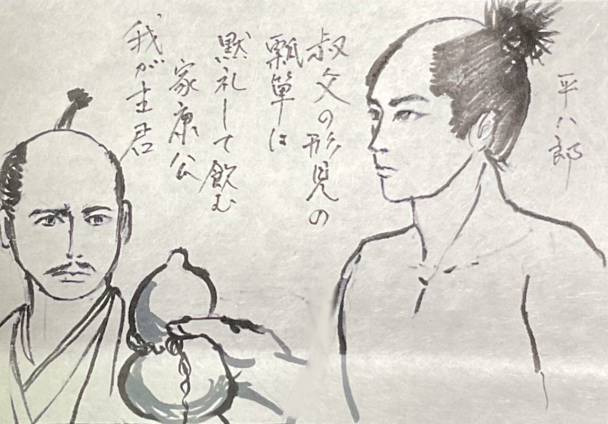 お髭を蓄えた家康公、艶を増し。 開戦前に若き配下の様子を見て周る時の慈愛深き眼差し。 一転、信雄殿に対しては威厳を備えた厳しき目の遣りよう。 平八郎は口ではまだ主君と思わぬと言いながらも熱い敬愛を示し、また家康公も彼が大事にする叔父の遺品の瓢箪に黙礼する。 #どうする家康 #どうする絵