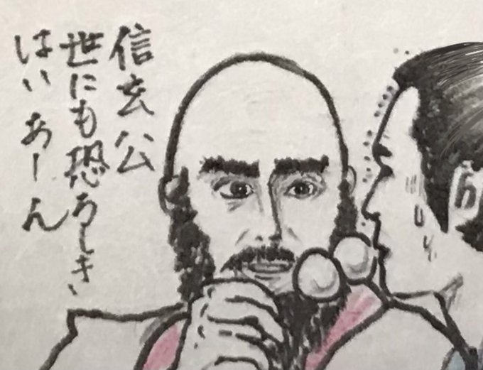 徳川家康の名を得て、都に官位を与えられ武田との会見へ。 今度こそ対等に話せるはずの信玄公は姿を見せず。 されど気配も見せず猫の声にて登場の武田信玄の威圧感たるや。 常には勢い余るお付きの若武者達すら、微動だにせず見守るのみ。 切り取り次第、の一言の恐ろしさ。 #どうする家康 #どうする絵