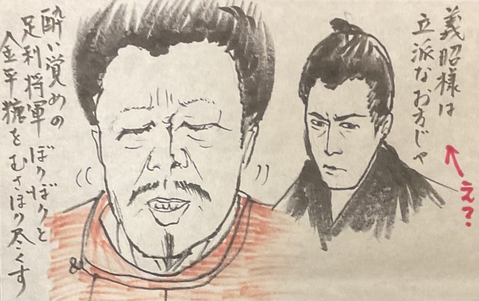 19 78 側室を巡る騒動は、家康公、正妻、母、それぞれの想いを内に秘め進み、一人の女子が選ばれてしまいます。 家康公に姫君がまた一人、側室から生まれました。 一方、京での将軍の凶報に笑む信長公。 黄金を惜しげなく投じ今川を狙う信玄公。 #どうする家康 #どうする絵 絵に描きたくなるのは、氏真殿。 23/03/12 21:40