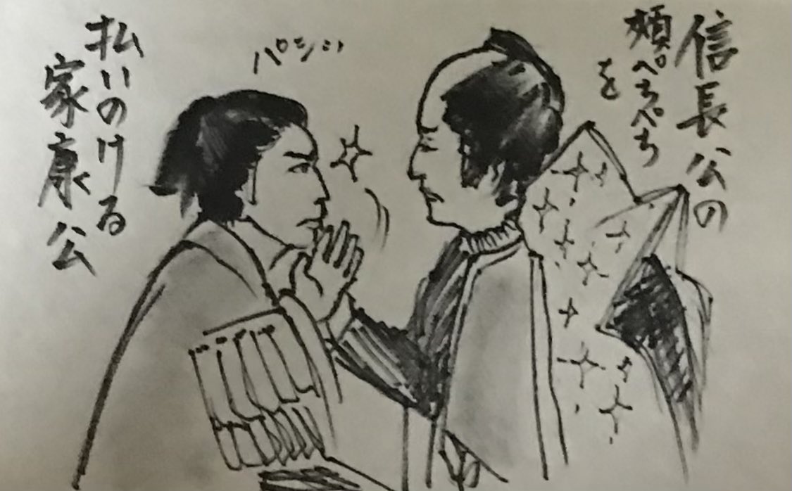救援寄越さぬなら武田に、との家康公の申しようは如何にも無礼に聞こえはしました。 当然、怒りの信長公は兵を率いてのお出ましですが。 怒り方がなんとも陰湿でねちこく、なのに可愛げが漂う始末。 武田につく、は禁句でした。 #どうする家康 #どうする絵 長年の頬ペチをようやく振り払う家康公。