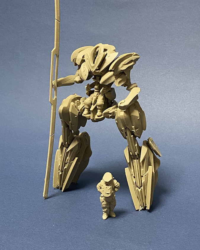 Ty-902 陸・空・軌道において運用できる戦術無人戦闘機。 胴体・両大腿部の斥力機関により重力に干渉されず機動推進、両肩には機動を安定させる補助機関を装備。四肢の可動は引斥駆動装置が担う。武装は全て出力や運用が異なる光学兵器。 発売は近日中を予定。通販ページ→qucca.booth.pm