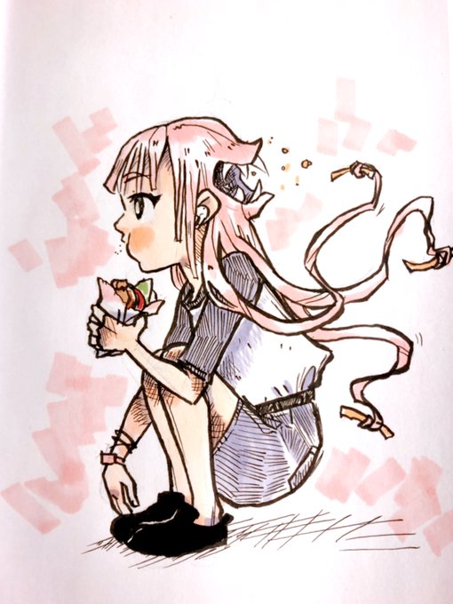 1 5 #inktober day 3 bait. Originally I wanted to draw a futakuchi-onna hunting someone but it turned into her eating a hamburger. 19/10/04 11:14