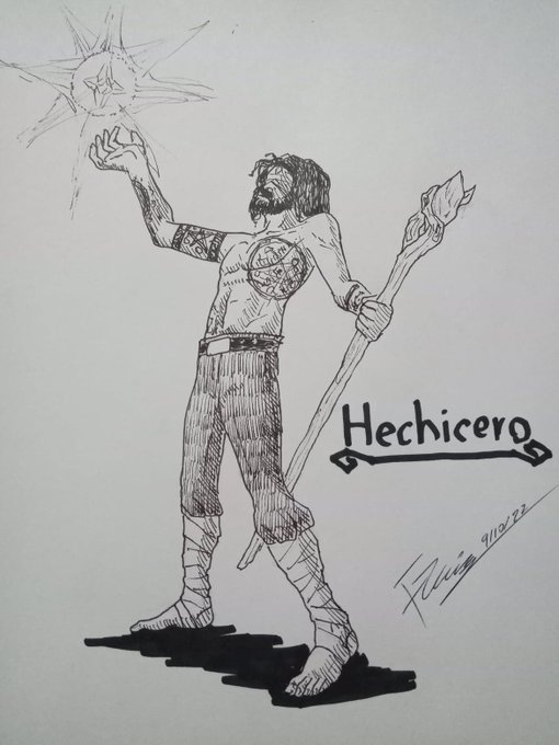 Dia 9, el hechicero practicando su magia por pura diversión. @LeyendasPodcast #TintubreLegendario2022 #tintubrelegendario #leyendaslegendarias #hechicero #Inktober #dibujo