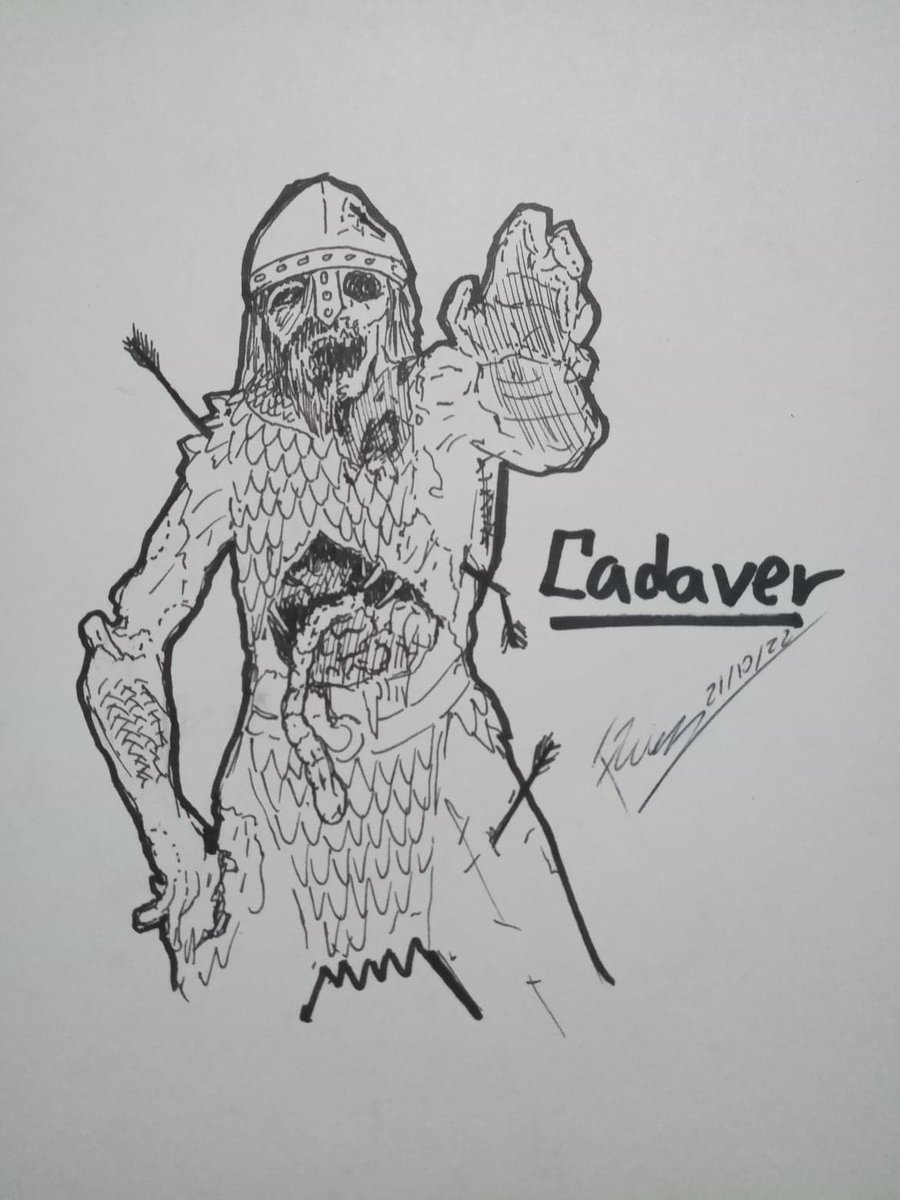 Dia 21, Cadaver, el cadaver reanimado de un vikingo no puede dejar de pelear. @LeyendasPodcast #TintubreLegendario2022 #leyendaslegendarias #Inktober #dibujo