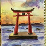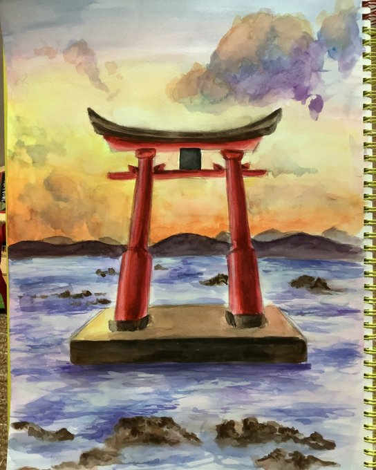 1 4 1日1絵チャレンジ63日目 鳥居 #水彩画 #水彩 22/08/02 23:16