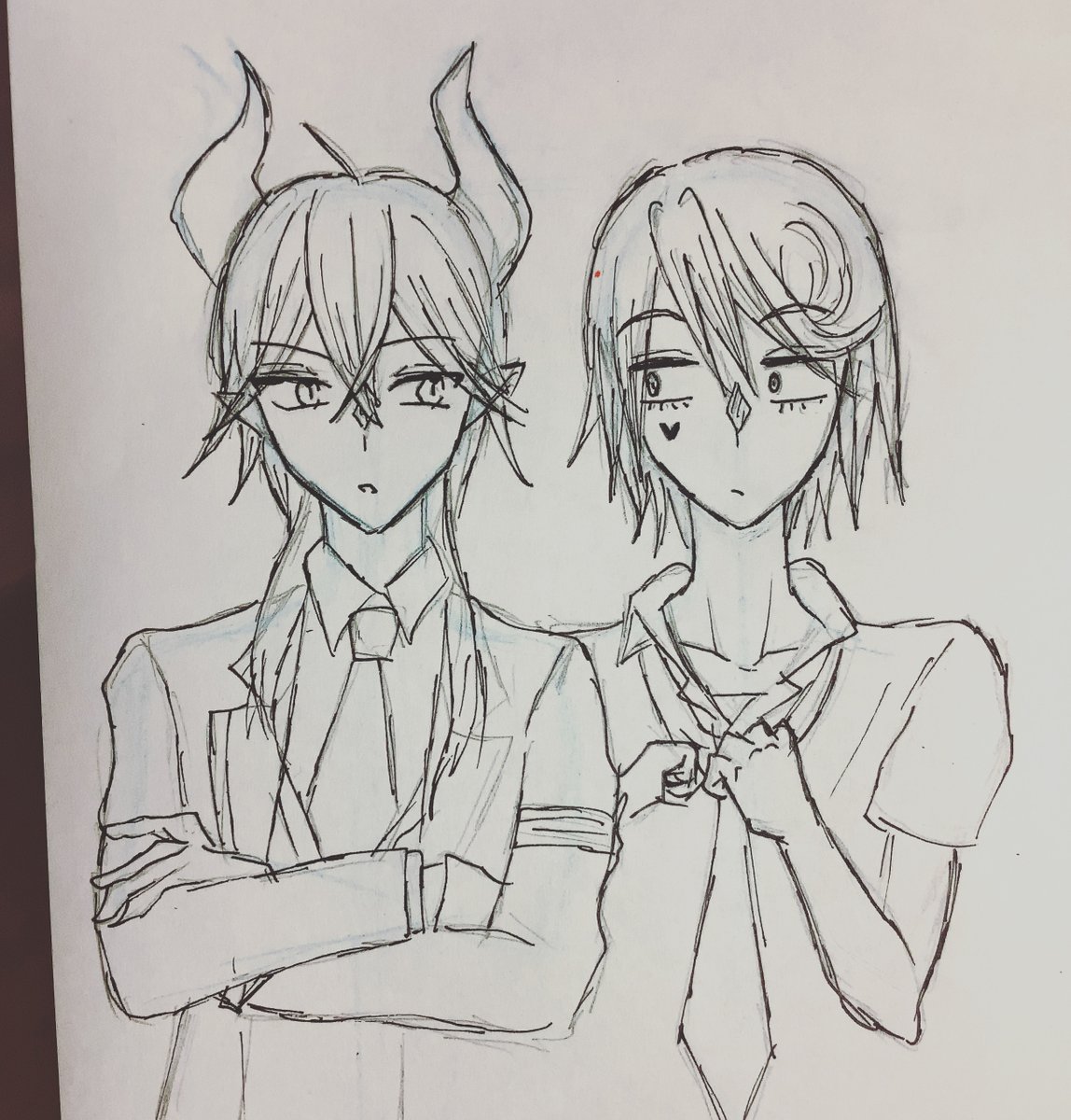 0 5 1日1絵チャレンジ83日目 202cm同士 #ツイステファンアート #弱虫ペダル #アナログイラスト 22/08/22 23:20