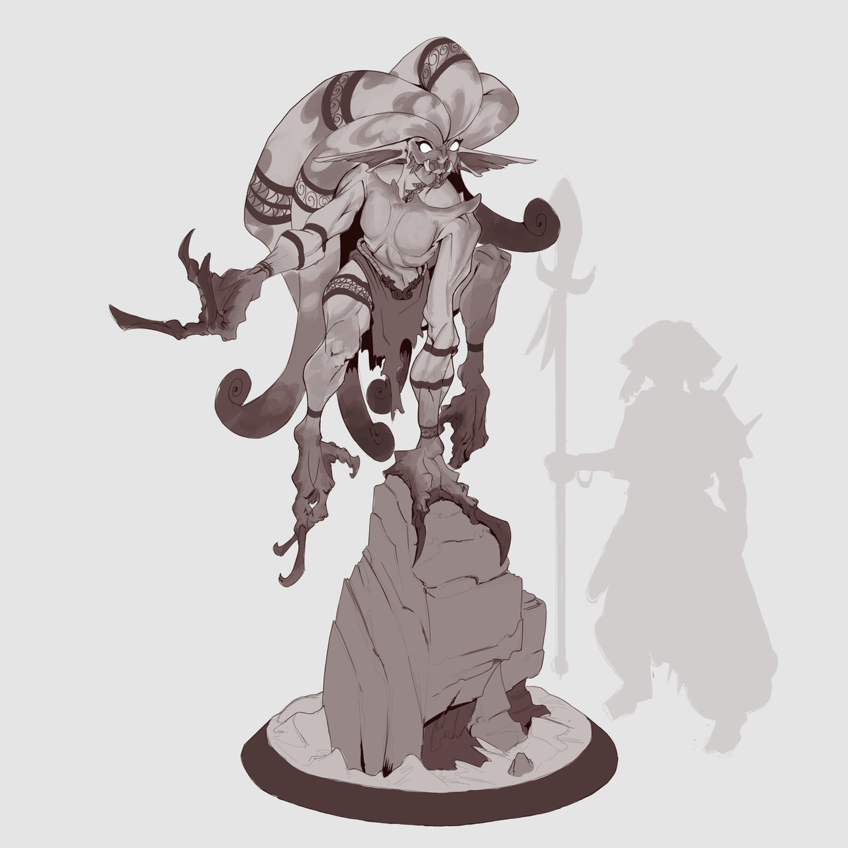 Probably my final mermaid for #mermay #mermay2022 Few and far between, attendants of Malara often deliver strange messages in layered tongues to her master's warlocks.