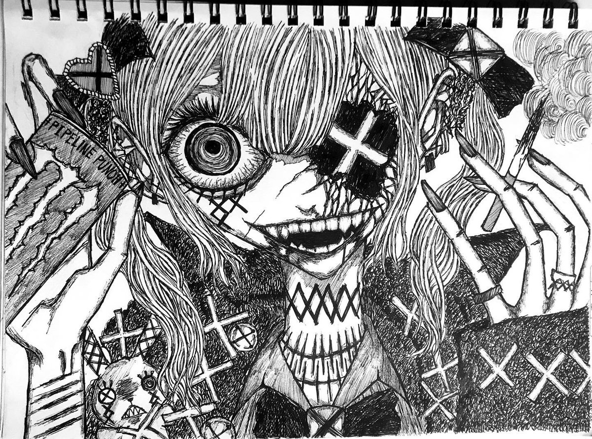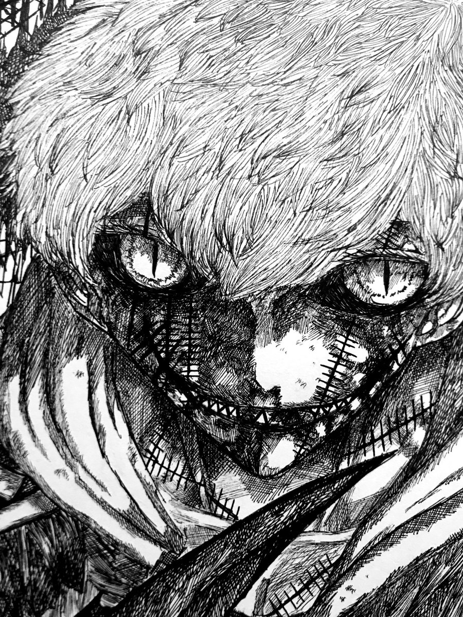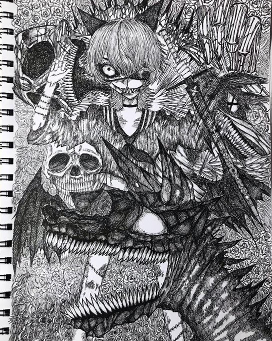常識トカ知ランガナ、上手ニ生キレナインダガ、ダガ、ダガガガガガ あ、顎取れた。 #絵描きさんと繋がたい #冬の創作クラスタフォロー祭り #病み垢さんとつながりたい
