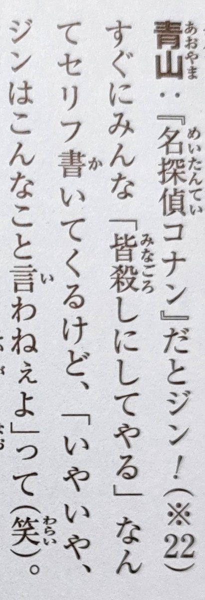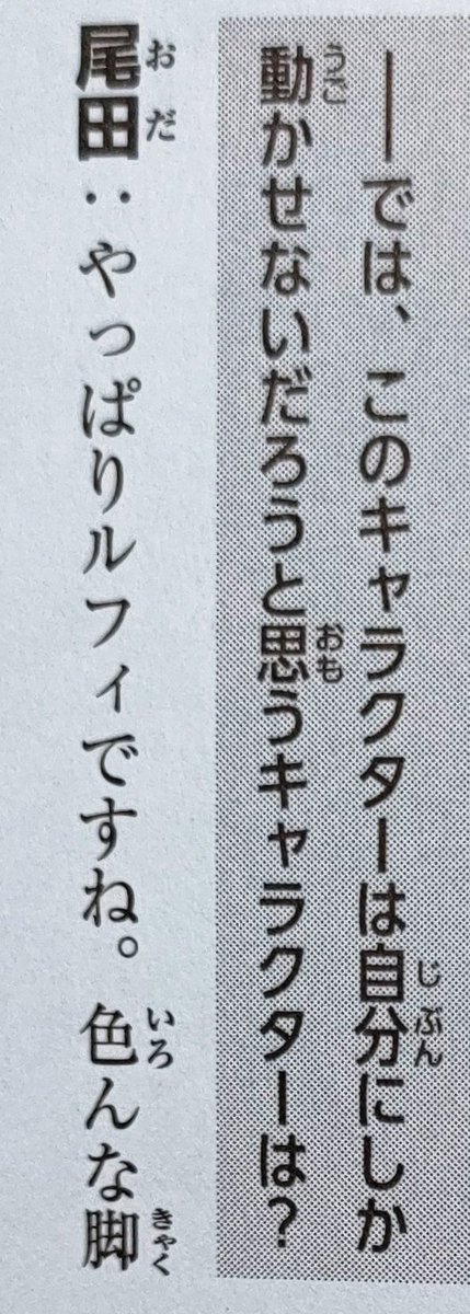 尾田先生と対談で、自分にしか動かせないキャラを聞かれた時に、尾田先生はルフィ青山先生はジンと即答した、つまり青山先生の中でジンは尾田先生のルフィと同じく重要性が高いと思う😌 twitter.com/shoot_drive/st…