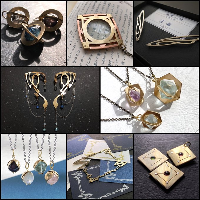 28 78 #みんなのSNSなんでも展示会2022 石と真鍮でファンタジー風味のアクセサリーや飾って眺める系の物など作っています。平面の組み合わせで色々やるのが好き。 22/07/13 12:01